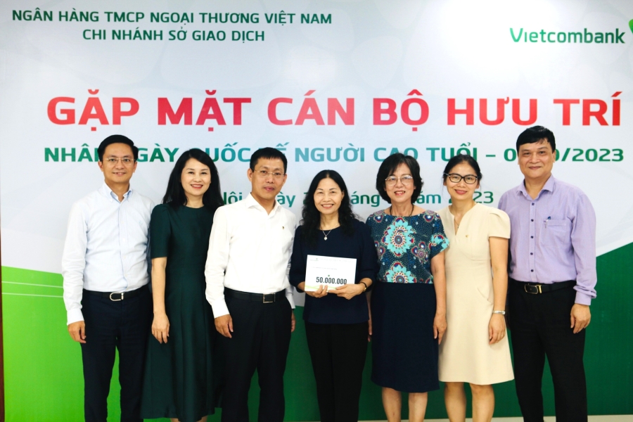 Ban Giám đốc Sở giao dịch đã chuyển tới cán cán bộ hưu trí quà tặng của Ban lãnh đạo Vietcombank, Ban Giám đốc Sở giao dịch cùng khoản tài trợ cho quỹ hoạt động của Ban liên lạc hưu trí.