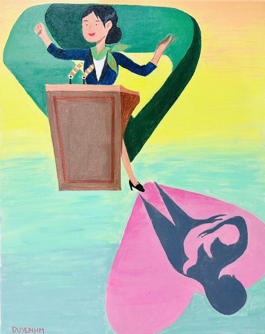 Tác phẩm tranh màu Arylic nổi bật của tác giả Hoàng Mỹ Duyên - Tổ công đoàn Phòng Dịch vụ khách hàng, Viecombank Đắk Lắk