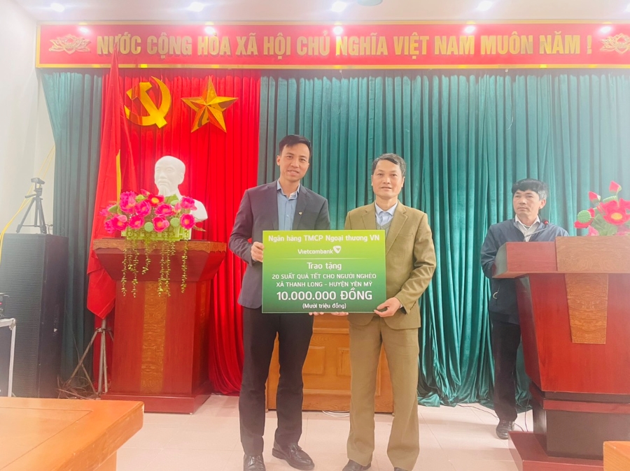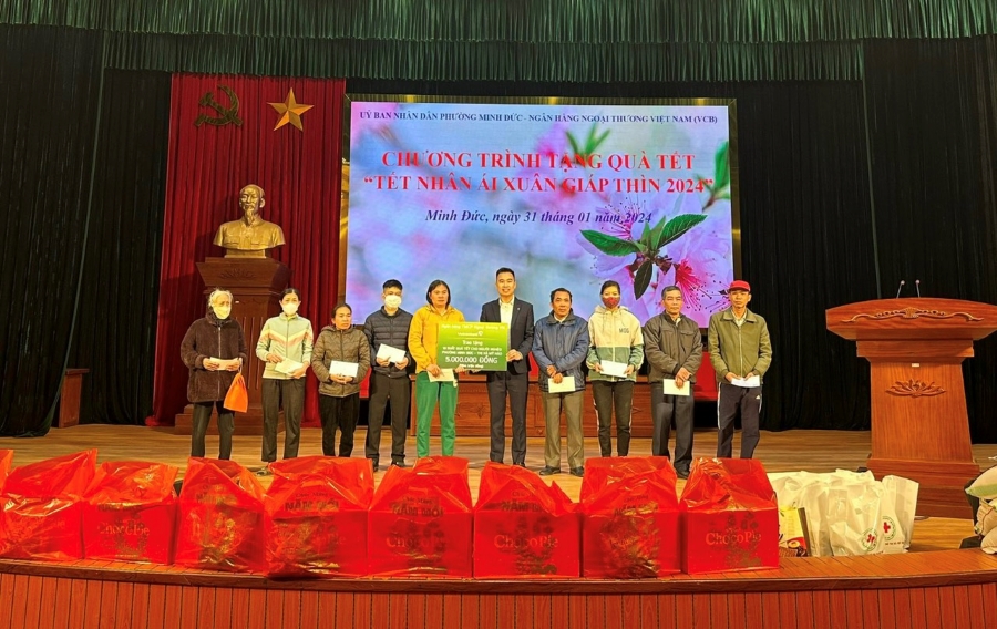 Phát huy tinh thần “Tương thân, tương ái”, “Lá lành đùm lá rách”, nhân dịp Xuân Giáp Thìn 2024, Vietcombank Hưng Yên đã trao tặng 300 suất quà, tổng giá trị 150 triệu đồng nhằm chia sẻ, động viên các gia đình chính sách, hộ nghèo trên địa bàn, mang đến một cái Tết vui vẻ, đầm ấm.