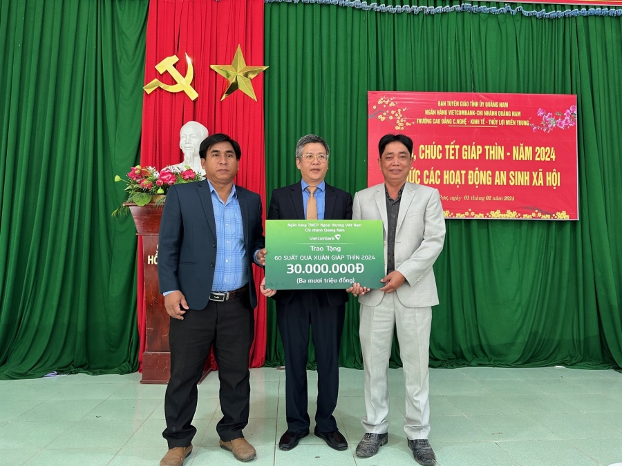 Ngày 01/02/2024, tại trụ sở UBND xã Tà Pơơ, huyện Nam Giang, tỉnh Quảng Nam, Công đoàn cơ sở Vietcombank Quảng Nam phối hợp cùng Ban Tuyên giáo Tỉnh ủy Quảng Nam và Trường Cao đẳng Công nghệ - Kinh tế và Thủy lợi Miền Trung thăm hỏi, chúc tết Đảng ủy, UBND, UBMTTQ và thực hiện chương trình an sinh xã hội tặng 60 suất quà trị giá 30 triệu đồng cho các hộ gia đình có công cách mạng, gia đình chính sách, hộ nghèo, hộ có hoàn cảnh khó khăn tại xã Tà Pơơ, huyện Nam Giang.