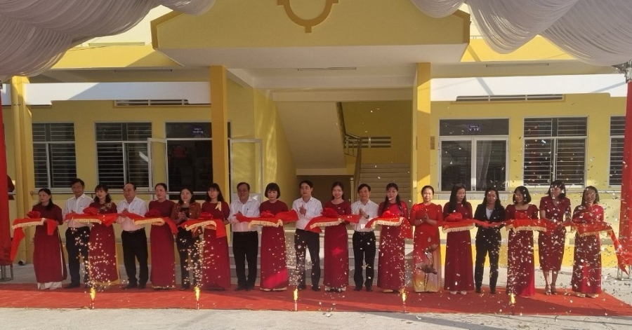 Trong khuôn khổ buổi lễ, các đại biểu đã long trọng cắt băng khánh thành, đi tham quan các phòng học và chia sẻ niềm vui chung với giáo viên, học sinh của trường.