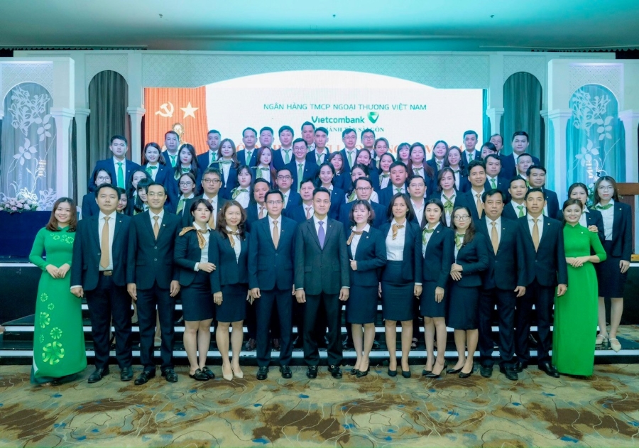 Tập thể CBNV NLĐ Vietcombank Tân Sài Gòn chụp hình lưu niệm tại hội nghị