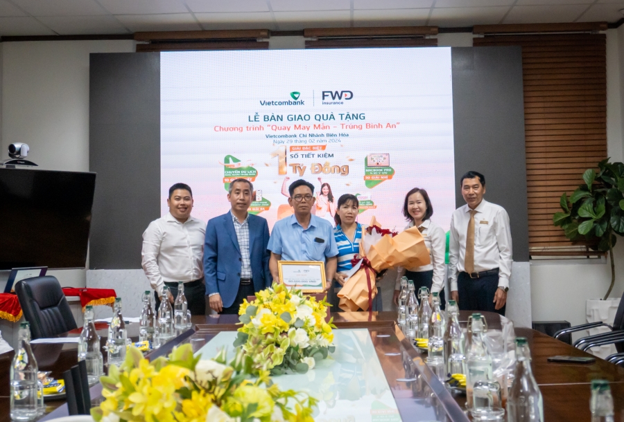 Vietcombank Biên Hòa cùng FWD trao thưởng cho khách hàng chương trình “Quay may mắn - Trúng bình an”