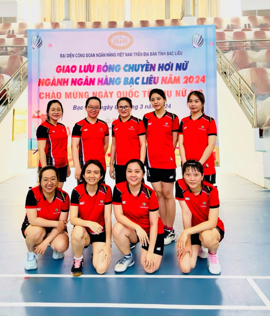 Mở đầu cho chuỗi hoạt động chào mừng 8/3 là giải thi đấu “Giao lưu bóng chuyền hơi nữ ngành Ngân hàng tỉnh Bạc Liêu” diễn ra vào ngày 02/03/2024 tại nhà thi đấu đa năng tỉnh Bạc Liêu. Giải đấu thu hút sự tham gia của 12 đội bóng nữ đến từ các ngân hàng trên địa bàn tỉnh. Với tinh thần yêu thể thao, các nữ vận động viên Vietcombank Bạc Liêu đã cống hiến cho khán giả những trận đấu gay cấn, đầy kịch tính. Giải đấu đã giúp cho các chị em phụ nữ rèn luyện sức khỏe, tăng cường tinh thần đoàn kết, đồng thời tạo sân chơi vui vẻ, gắn kết giữa các thành viên trong chi nhánh.