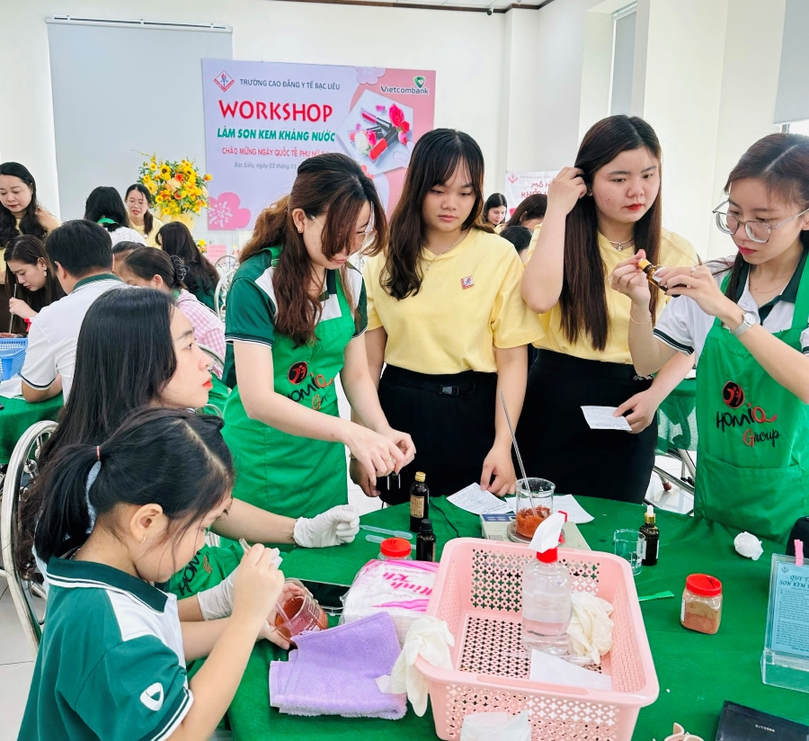 Cán bộ Vietcombank Bạc Liêu tham gia workshop làm son kem kháng nước chào mừng ngày Quốc tế Phụ nữ 8-3