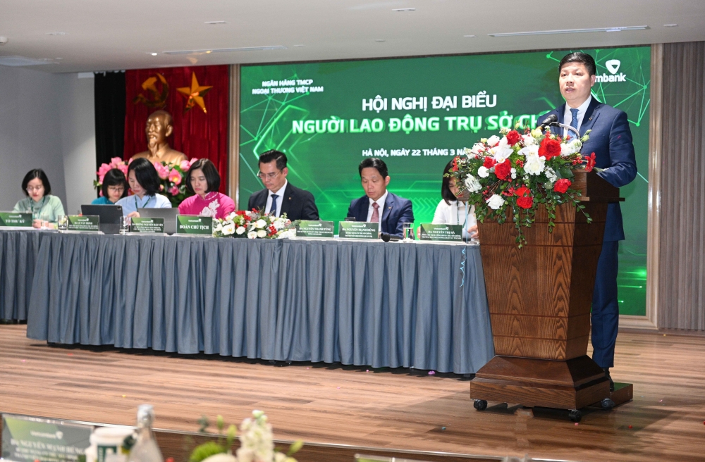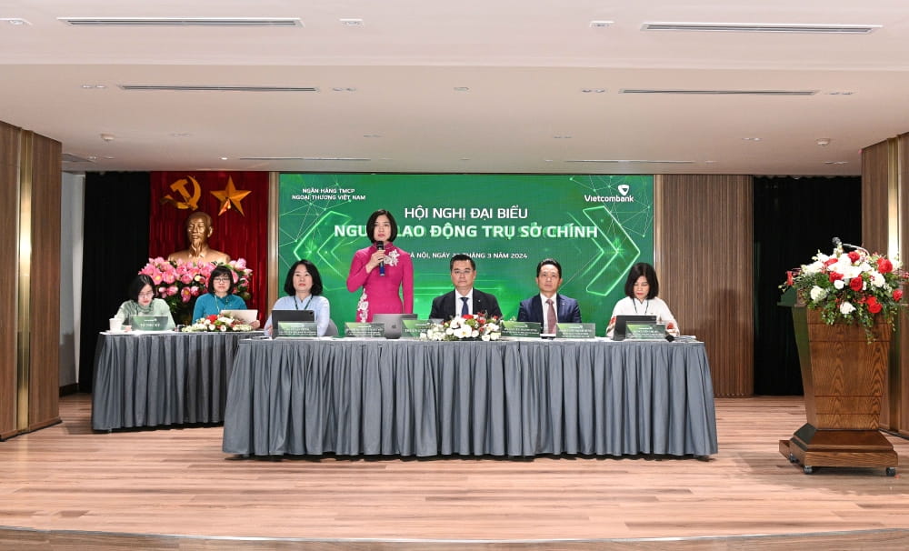 Phát biểu khai mạc Hội nghị, đ/c Nguyễn Thanh Tùng – Phó Bí thư Đảng ủy phụ trách Đảng bộ, Thành viên HĐQT, Tổng Giám đốc Vietcombank đánh giá: hoạt động Công đoàn TSC năm 2023 đã có những đổi mới, sáng tạo để phù hợp với thực tiễn đời sống của cán bộ nhân viên Trụ sở chính nhằm đảm bảo cả về vật chất lẫn tinh thần. Thu nhập bình quân của cán bộ Vietcombank năm 2023 tiếp tục nằm trong nhóm những ngân hàng dẫn đầu toàn hệ thống ngân hàng thương mại tại Việt Nam. Năm 2023, Vietcombank lần thứ 4 liên tiếp được nhận bằng khen “Doanh nghiệp tiêu biểu vì người lao động” và duy trì vị thế dẫn đầu 8 năm liên tiếp là ngân hàng có môi trường làm việc tốt nhất Việt Nam và nằm trong top 50 thương hiệu nhà tuyển dụng hấp dẫn với sinh viên Việt Nam. Hội nghị đại biểu người lao động TSC được tổ chức là dịp để người lao động tham gia ý kiến, đối thoại trực tiếp, phát huy quyền làm chủ của mình. Đồng chí Tổng Giám đốc đề nghị toàn thể cán bộ, nhân viên, người lao động của TSC tập trung cao độ tinh thần, trí tuệ, đóng góp ý kiến, giải pháp góp phần hoàn thành xuất sắc nhiệm vụ năm 2024 cũng như các vấn đề liên quan đến quyến lợi của NLĐ.