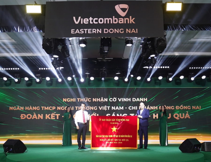 Cũng tại buổi lễ, ông Đỗ Việt Hùng - Phó Bí thư Đảng ủy, Thành viên phụ trách hoạt động của HĐQT Vietcombank thay mặt Ban lãnh đạo đã ghi nhận, chúc mừngvà đánh giá cao những thành tích mà chi nhánh đạt được trong thời gian qua, đặc biệt giai đoạn 2019 - 2024, chi nhánh đã có những bước tiến vượt bậc. Đến hết năm 2023, quy mô huy động vốn của chi nhánh đạt trên 12.000 tỷ đồng, vươn lên vị trí thứ 39 toàn hệ thống; tín dụng đạt trên 9.000 tỷ đồng, vươn lên vị trí thứ 55 toàn hệ thống. Sau 10 năm hoạt động, tốc độ tăng trưởng bình quân quy mô huy động vốn và tín dụng hàng năm của chi nhánh đạt trên 50%/năm, nằm trong nhóm dẫn đầu về thị phần trong các tổ chức tín dụng trên địa bàn. Trong 5 năm gần nhất, tỷ lệ nợ xấu của chi nhánh luôn dưới ngưỡng khống chế trụ sở chính giao. Với việc thực hiện tốt các chỉ tiêu, hiệu quả kinh doanh hằng năm của chi nhánh tăng trưởng từ mức 1.2 tỷ đồng năm 2014 lên mức 290 tỷ đồng vào năm 2023. Những thành tích mà chi nhánh đã đạt được là nhờ sự đoàn kết, năng động, sáng tạo, trách nhiệm của Ban Giám đốc và tập thể CBNV chi nhánh qua các thời kỳ. Ông Đỗ Việt Hùng đã gửi lời cảm ơn đến Tỉnh ủy, HĐND, UBND tỉnh Đồng Nai và các sở ban ngànhđã quan tâm chỉ đạo, hỗ trợ, tạo điều kiện và đồng hành cùng Vietcombank Đông Đồng Nai trong thời gian qua, đồng thời bày tỏ tin tưởng vào sự đóng góp nhiều hơn nữa của Chi nhánh trong việc thực hiện những mục tiêu chiến lược chung của hệ thống Vietcombank trong thời gian tới.