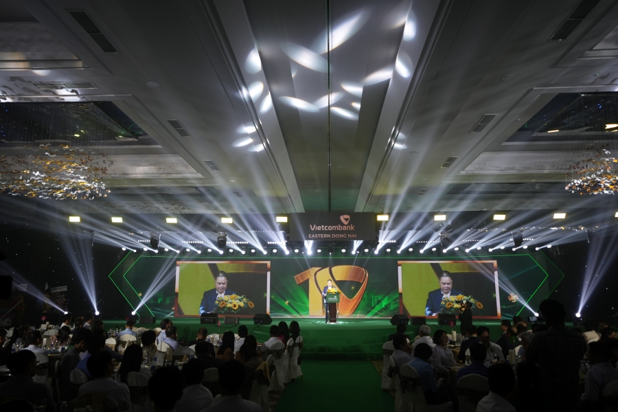 Thay mặt Ban Giám đốc, ông Trần Thành Nam báo cáo tóm tắt chặng đường 10 năm xây dựng phát triển và trưởng thành của chi nhánh. So với thời điểm mới thành lập, Vietcombank Đông Đồng Nai hôm nay đã có sự tăng trưởng ngoạn mục với tổng tài sản tăng từ 511 tỷ đồng (năm 2014) lên 21.451 tỷ đồng vào cuối năm 2023. Trong giai đoạn từ năm 2019 đến 2023, Chi nhánh vinh dự liên tiếp đạt thành tích “Đơn vị kinh doanh xuất sắc” hoàn thành nhiệm vụ của hệ thống, đồng thời tự hào là Chi nhánh có sự đóng góp tích cực vào sự phát triển của hệ thống Vietcombank. Chi nhánh cũng là đơn vị tiên phong thực hiện chuyển đổi số khi chính thức kết nối thành công, cung cấp các kênh giao dịch thanh toán số tại Trung tâm hành chính công tỉnh Đồng Nai. Hơn cả những con số, những thành tích, 10 năm qua là hành trình vun đắp niềm tin, là sự gắn kết bền chặt giữa Vietcombank Đông Đồng Nai với tất cả khách hàng và cộng đồng địa phương. Chi nhánh luôn ghi nhớ và trân trọng sự đồng hành ấy, đó là nguồn động lực lớn lao để Vietcombank Đông Đồng Nai tiếp tục hành trình phát triển trong tương lai. Trên hành trình sắp tới, Vietcombank Đông Đồng Nai mong muốn tiếp tục nhận được sự quan tâm, ủng hộ và đồng hành của quý vị đại biểu, các doanh nghiệp và toàn thể khách hàng. Chúng tôi tin tưởng rằng, với sự quyết tâm và nỗ lực của toàn thể CBNV, Vietcombank Đông Đồng Nai sẽ tiếp tục phấn đấu gặt hái nhiều thành công hơn nữa, khẳng định là Chi nhánh có quy mô và thị phần top đầu tại khu vực tỉnh Đồng Nai và hệ thống Vietcombank, đồng hành cùng khách hàng và cộng đồng phát triển thịnh vượng.