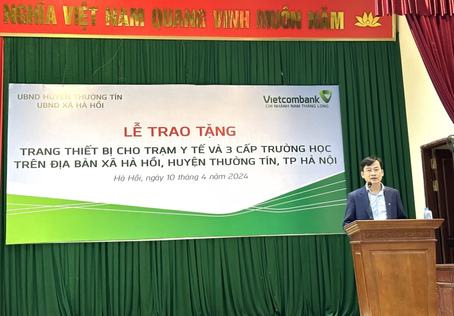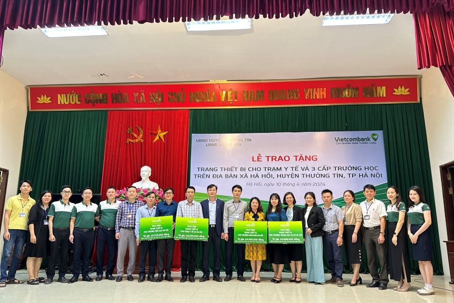 Sáng ngày 10/4/2024, tại trụ sở UBND xã Hà Hồi, huyện Thường Tín, thành phố Hà Nội, Vietcombank Nam Thăng Long đã phối hợp với chính quyền xã tổ chức trao tặng trang thiết bị cho Trạm y tế xã Hà Hồi và đồ dùng cần thiết cho các trường học trên địa bàn: Trường mầm non Hà Hồi, Trường tiểu học Hà Hồi và Trường THCS Hà Hồi với tổng số tiền tài trợ là 200 triệu đồng.
