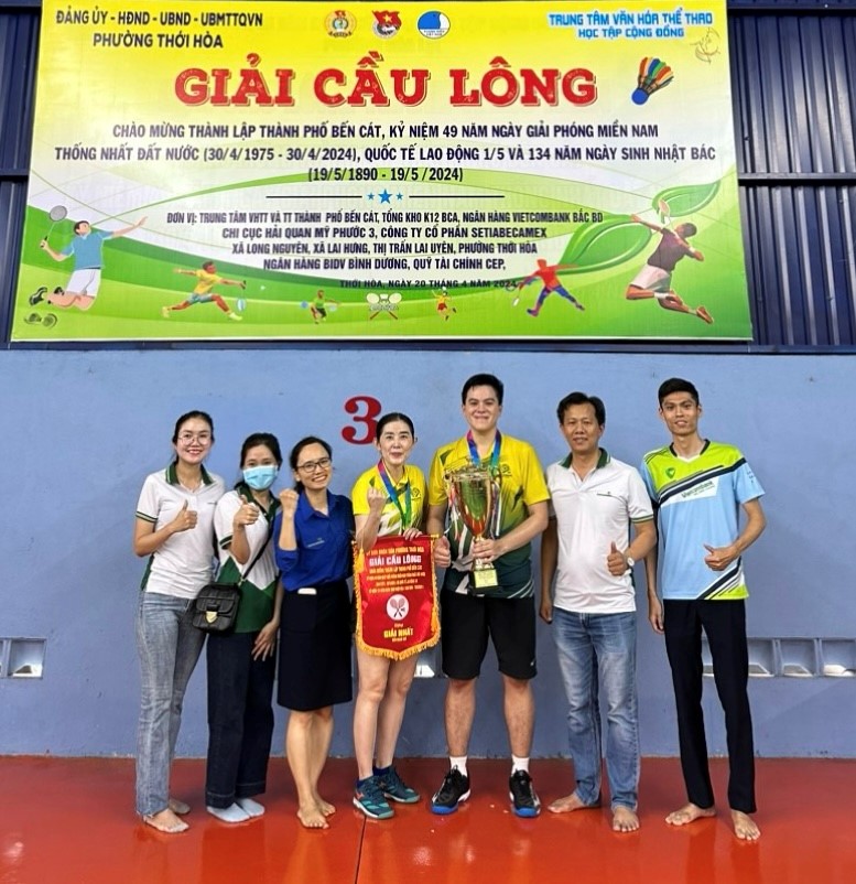 Đoàn Vietcombank Bắc Bình Dương xuất sắc đạt cup vô địch nội dung đôi nam nữ môn cầu lông