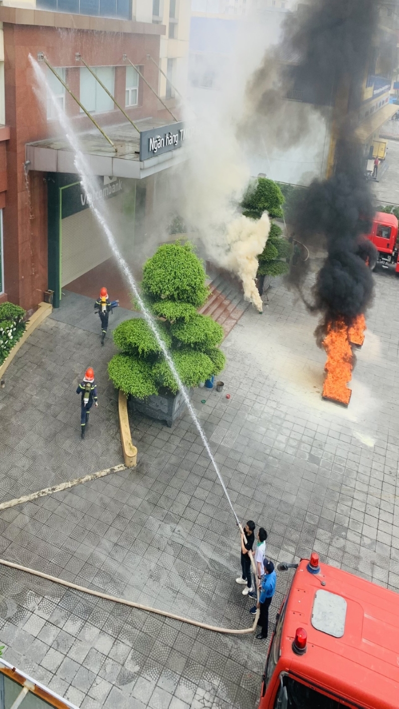 Ngay sau phần lý thuyết, các CBNV Chi nhánh được tham gia diễn tập PCCC và CNCH tại hiện trường giả định cũng như cách thức sử dụng các thiết bị, phương tiện chữa cháy trong thực tế.