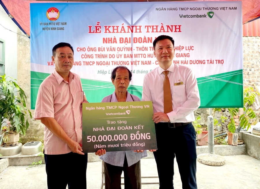 Sáng ngày 14/5/2024, Vietcombank Hải Dương đã phối hợp với Ủy ban MTTQ huyện Ninh Giang tổ chức bàn giao nhà đại đoàn kết cho ông Bùi Văn Quỳnh ở thôn Trung, xã Hiệp Lực, huyện Ninh Giang.