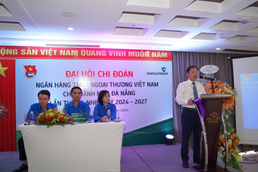 Phát biểu chỉ đạo Đại hội, đồng chí Dương Bảo Trung – Bí thư Đoàn thanh niên Vietcombank ghi nhận và biểu dương những kết quả tích cực trong công tác Đoàn và phong trào thanh niên của Chi nhánh trong suốt thời gian qua. Bên cạnh đó, đồng chí cũng nhấn mạnh, Đoàn thanh niên Vietcombank Nam Đà Nẵng cần phải gắn kết chặt chẽ giữa nhiệm vụ công tác Đoàn với nhiệm vụ kinh doanh của Chi nhánh, tiếp tục bám sát việc thực hiện các chỉ tiêu, nhiệm vụ của Nghị quyết Đại hội Chi đoàn, nhiệm kỳ 2024-2027.