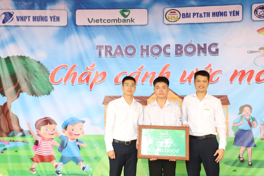 Sáng ngày 15/5/2024, tại huyện Văn Giang, Vietcombank Hưng Yên thực hiện trao học bổng cho em Nguyễn Quang Thắng, hiện là học sinh lớp 12A7 trường THPT Dương Quảng Hàm, trong chương trình “Chắp cánh ước mơ” định kì hàng tháng do Vietcombank Hưng Yên phối hợp với Đài Phát thanh – Truyền hình tỉnh, Sở giáo dục và Đào tạo, VNPT Hưng Yên tổ chức, với mong muốn trao học bổng cho những học sinh có hoàn cảnh khó khăn nhưng đầy nghị lực vươn lên trong cuộc sống.