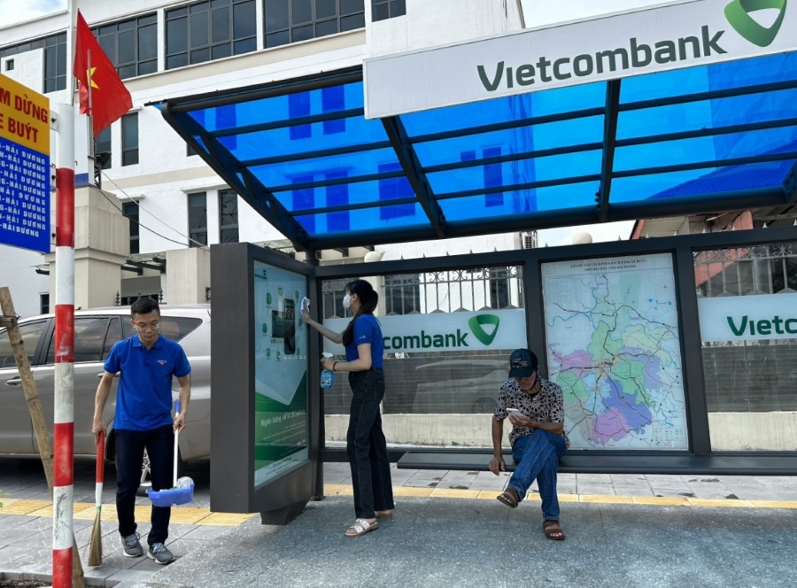 Một số hình ảnh Đoàn viên thanh niên tham gia dọn vệ sinh các điểm nhà chờ xe bus trên địa bàn thành phố Hải Dương