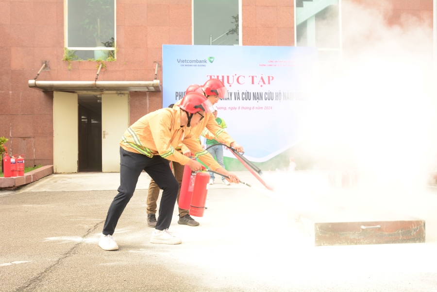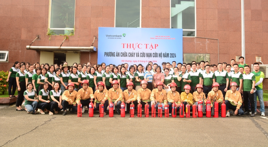 Nhằm nâng cao ý thức, tinh thần chủ động trong công tác phòng cháy chữa cháy cho toàn thể cán bộ nhân viên, ngày 08/06/2024, Vietcombank Hải Dương đã tổ chức diễn tập về công tác Phòng cháy chữa cháy và cứu nạn cứu hộ (PCCC&CNCH) với sự tham gia của Ban Giám đốc, toàn thể cán bộ nhân viên và lực lượng bảo vệ tại chi nhánh.