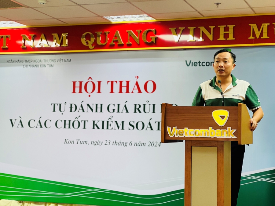 Nhận thức được tầm quan trọng của công tác quản trị rủi ro trong hoạt động ngân hàng, ngày 23/6/2024, Vietcombank Kon Tum đã tổ chức hội thảo tự đánh giá rủi ro và các chốt kiểm soát (RCSA) năm 2024 liên quan đến các nghiệp vụ bao gồm: Tín dụng; Thanh toán chuyển tiền; An toàn kho quỹ; An toàn bảo mật thông tin; Huy động vốn.