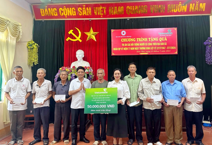 Mở đầu chuỗi hoạt động, ngày 23/7/2024, Đoàn công tác của Vietcombank Nam Định do đ/c Đoàn Thị Hồng Nga - Bí thư Chi bộ, Giám đốc Chi nhánh làm trưởng đoàn đã thăm hỏi, trao quà cho 100 cá nhân tại xã Liên Bảo, huyện Vụ Bản là đối tượng chính sách, thương bệnh binh, người có công với cách mạng thuộc các hộ gia đình có hoàn cảnh khó khăn.