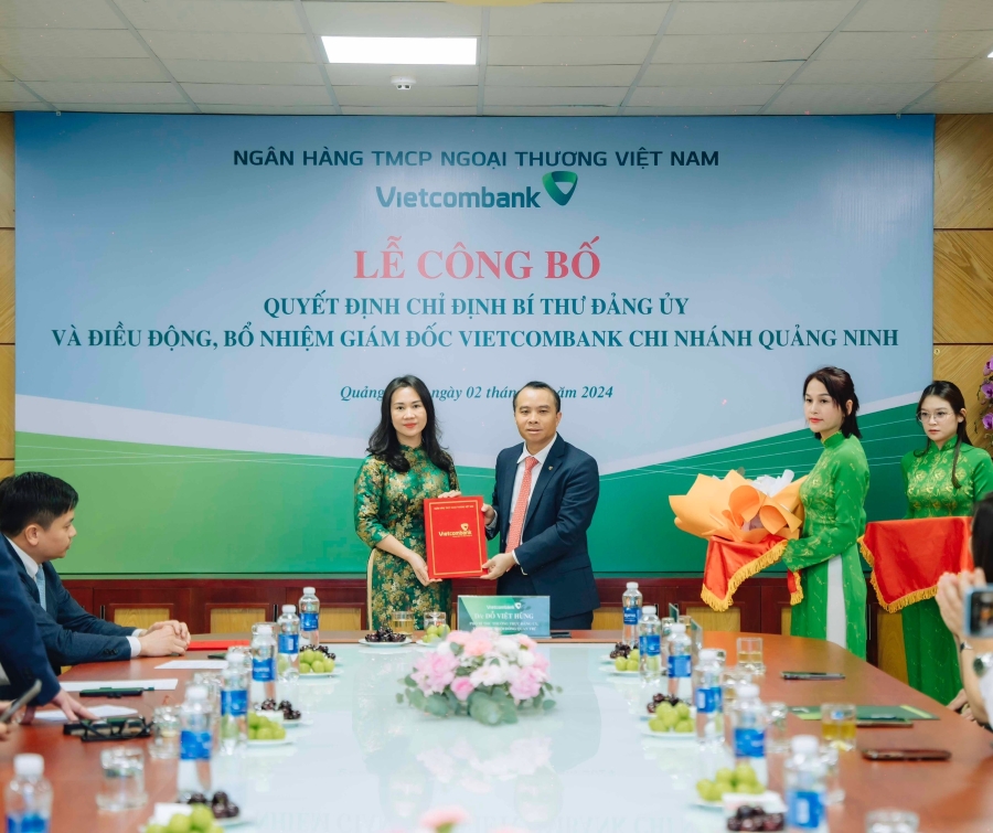 Tại buổi lễ, Vietcombank đã công bố quyết định của Đảng ủy Vietcombank chỉ định nhân sự tham gia Ban Chấp hành và giữ chức vụ Bí thư Đảng ủy Vietcombank Quảng Ninh nhiệm kỳ 2020-2025 đối với bà Nguyễn Thị Thu Trang kể từ ngày 02/08/2024; công bố quyết định của Hội đồng quản trị điều động và bổ nhiệm bà Nguyễn Thị Thu Trang - Giám đốc Vietcombank Móng Cái giữ chức vụ Giám đốc Vietcombank Quảng Ninh kể từ ngày 02/08/2024.
