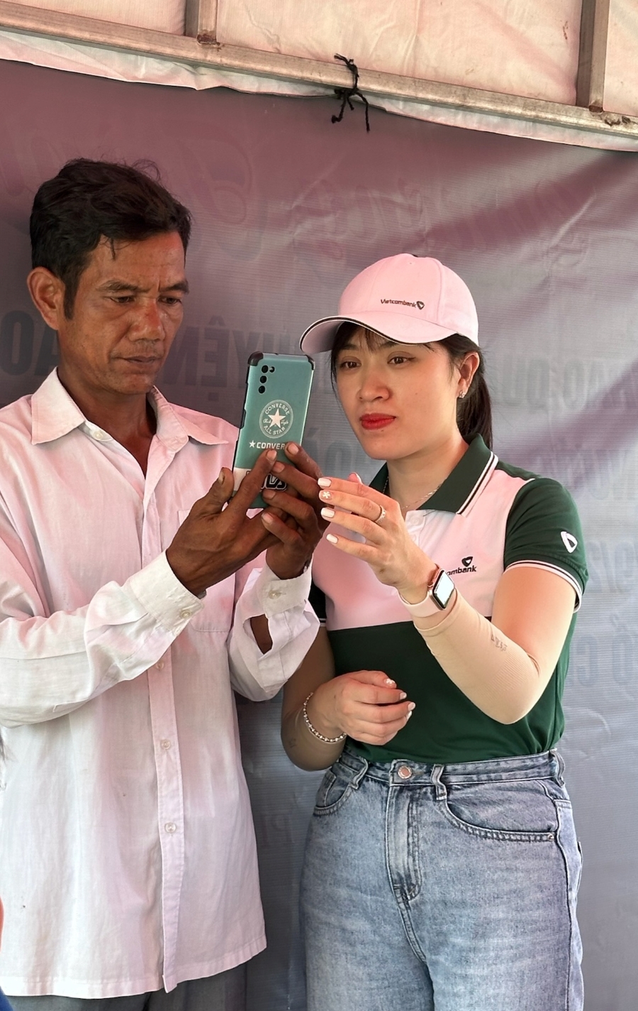 Đoàn thanh niên Vietcombank Gia Lai thực hiện mở thông tin khách hàng ứng dụng giải pháp định danh trực tuyến eKYC cho bà con đến khám bệnh tại thôn Plei Hek