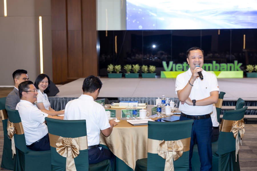 Đ/c Lê Hoàng Tùng - Ủy viên BCH Đảng bộ Vietcombank, Ủy viên BCH Đảng bộ TSC, Phó Tổng Giám đốc chia sẻ tại sự kiện