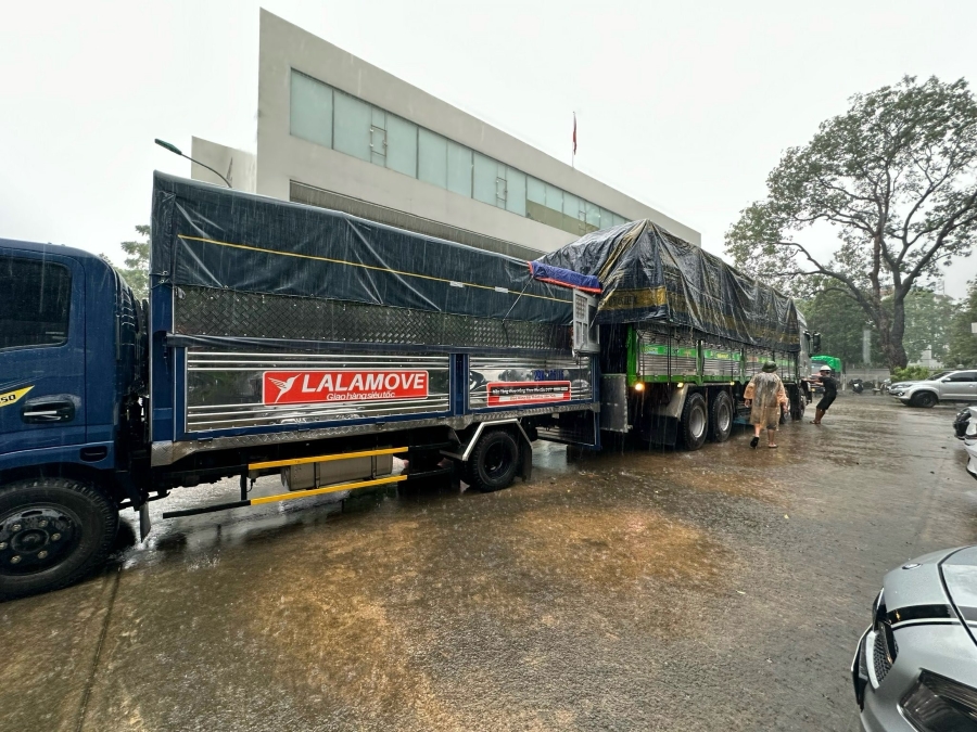 Dưới cơn mưa rào tại Hà Nội, cán bộ đoàn và đoàn viên thanh niên của 4 đơn vị với tinh thần khẩn trương đã gấp rút tập kết nhu yếu phẩm. Chuyến xe yêu thương đã khởi hành lúc 13h25’ cùng ngày để kịp thời cứu trợ nhân dân vùng bão lũ.