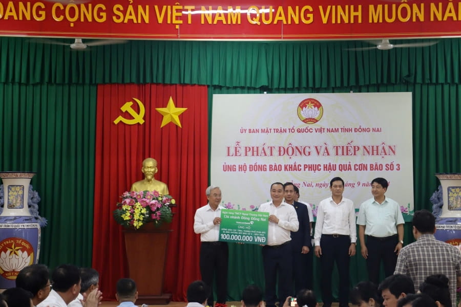 Hưởng ứng chương trình phát động ủng hộ đồng bào bị thiệt hại do bão số 3 gây ra của Ban thường trực UBMTTQ Việt Nam tỉnh Đồng Nai, Vietcombank Đông Đồng Nai kêu gọi, phát động toàn thể cán bộ, người lao động trong chi nhánh, quyên góp số tiền 100 triệu đồng hỗ trợ, chia sẻ với người dân bị ảnh hưởng sau cơn bão số 3 (bão Yagi).