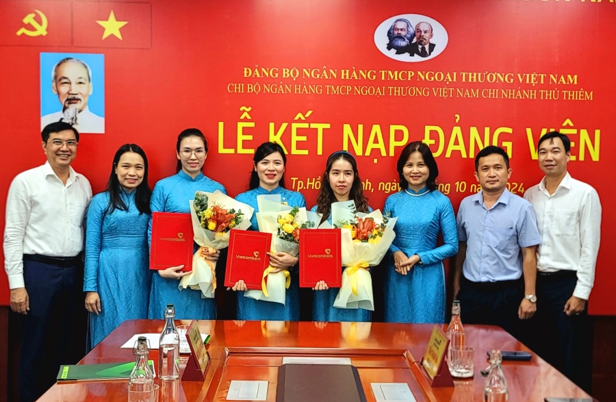 Ngày 17/10/2024, thực hiện Nghị quyết Đại hội Chi bộ cơ sở nhiệm kỳ 2020-2025, Chi bộ cơ sở Vietcombank Thủ Thiêm đã trang trọng tổ chức Lễ kết nạp đảng viên mới tại Hội trường chi nhánh.
