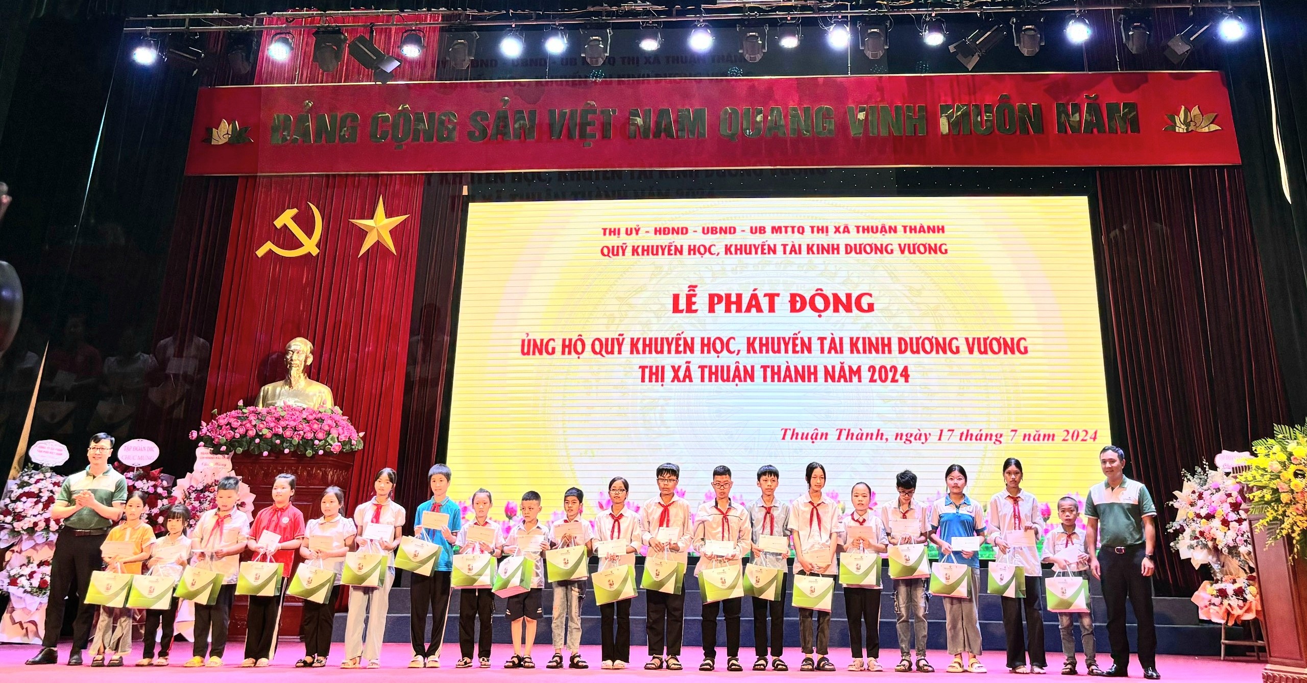 Quỹ khuyến học, khuyến tài Kinh Dương Vương, thị xã Thuận Thành được thành lập năm 2021 nhằm giúp các em học sinh có hoàn cảnh khó khăn vươn lên trong học tập; tuyên dương, khen thưởng giáo viên dạy giỏi, học sinh, sinh viên học giỏi góp phần ươm mầm đào tạo nhân lực, nhân tài cho quê hương đất nước. Vì vậy, nhằm tiếp tục đóng góp nhiều hơn nữa vào sự phát triển kinh tế - xã hội của tỉnh Bắc Ninh nói chung và thị xã Thuận Thành nói riêng, Vietcombank Nam Bắc Ninh đã tài trợ 500 triệu đồng cho Quỹ khuyến học, khuyến tài Kinh Dương Vương thị xã Thuận Thành nhằm hỗ trợ cho các em học sinh thuộc các gia đình nghèo hoặc hoàn cảnh đặc biệt khó khăn vượt khó vươn lên trong học tập.