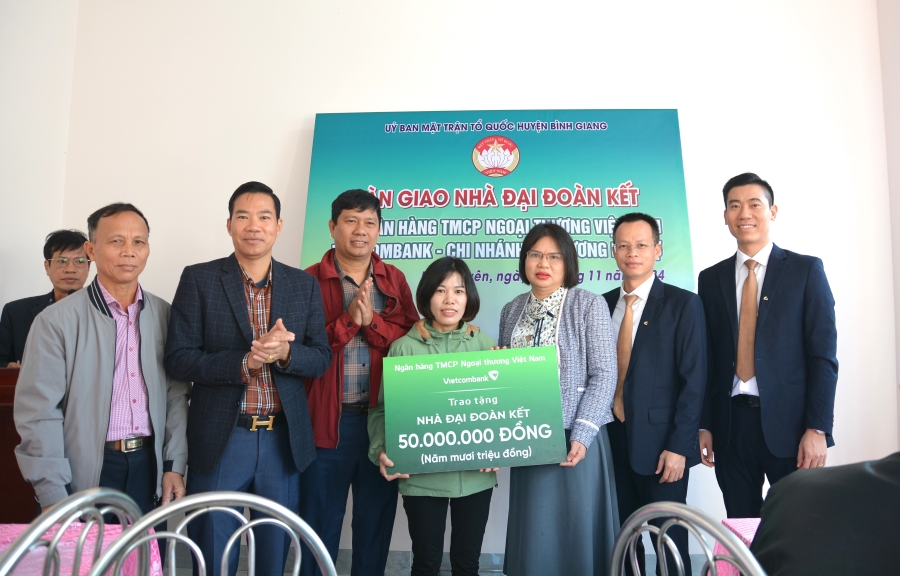 Hỗ trợ xây nhà đại đoàn kết cho những hoàn cảnh khó khăn là một trong những hoạt động thường xuyên trong công tác an sinh xã hội của Vietcombank Hải Dương. Đây là căn nhà thứ 23 mà Vietcombank Hải Dương trao tặng trong năm 2024 và là căn nhà thứ 3 trao tặng cho người nghèo huyện Bình Giang. Vietcombank Hải Dương mong muốn chung tay cùng chính quyền địa phương xây dựng nhiều công trình có ý nghĩa cho cộng đồng, giúp đỡ cho người nghèo trên địa bàn tỉnh hiện thực giấc mơ an cư, ổn định cuộc sống và vươn lên thoát nghèo.