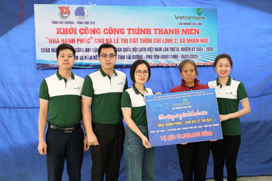 Sáng ngày 21/12/2024, Chi đoàn cơ sở Vietcombank Chí Linh phối hợp với Tỉnh đoàn Hải Dương, Tỉnh đoàn Phú Yên trao tặng công trình thanh niên “Nhà hạnh phúc” cho gia đình bà Lê Thị Đát ở xã Nhân Huệ, thành phố Chí Linh với giá trị 50 triệu đồng.