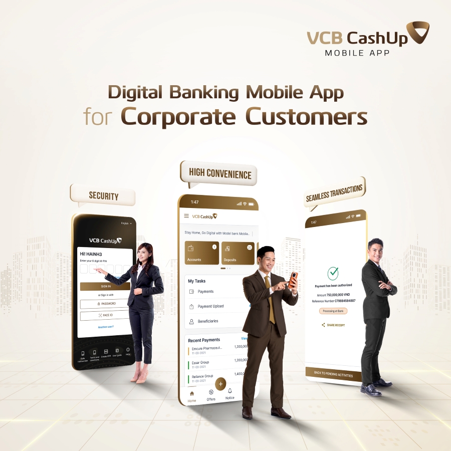 With the goal of enhancing the customer experience when using VCB CashUp, Vietcombank officially introduces the VCB CashUp Mobile application, designed specifically for corporate customers.