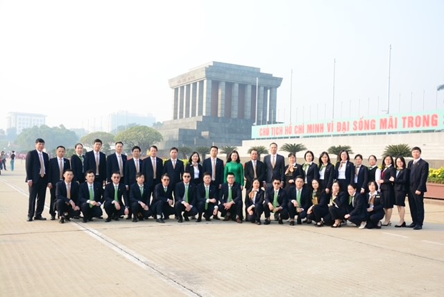 Chi bộ Vietcombank Chí Linh chụp ảnh lưu niệm tại quảng trường Ba Đình