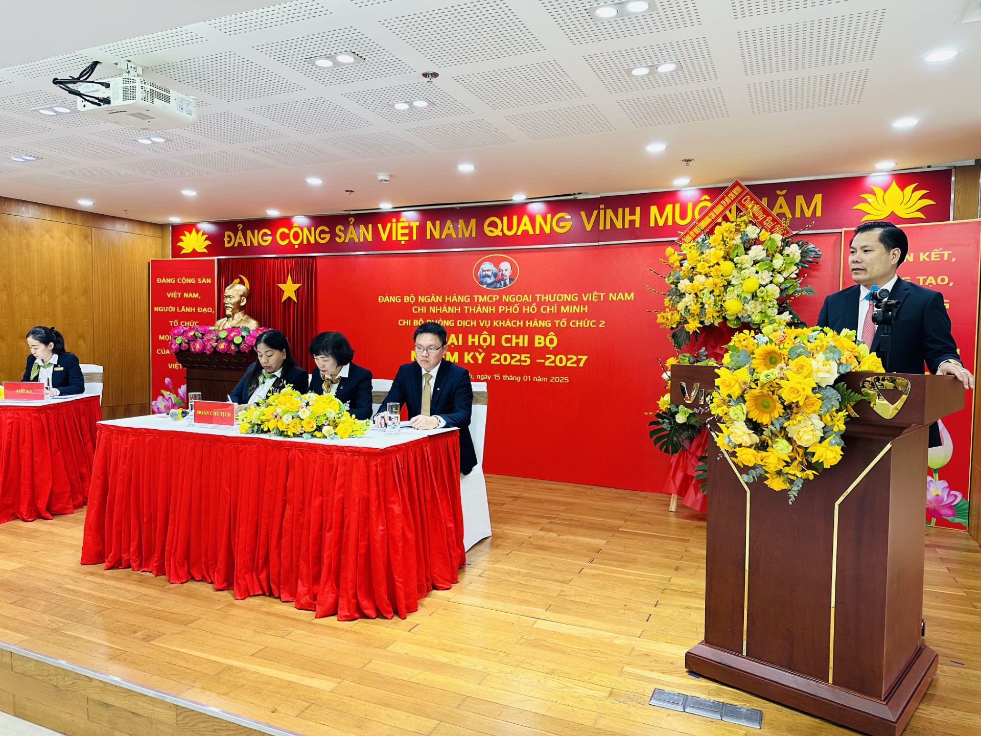 Thực hiện kế hoạch, chỉ đạo của Đảng ủy Vietcombank và được sự chấp thuận của Đảng ủy Vietcombank TP. Hồ Chí Minh, chiều ngày 15/01/2025, Chi bộ Phòng Dịch vụ Khách hàng Tổ chức 2 đã tổ chức Đại hội Chi bộ điểm nhiệm kỳ 2025 - 2027 nhằm đánh giá kết quả thực hiện nghị quyết Đại hội nhiệm kỳ 2022 - 2025, đề ra mục tiêu, nhiệm vụ, giải pháp cho nhiệm kỳ mới; bầu Chi ủy, Bí thư và Phó Bí thư Chi bộ nhiệm kỳ 2025 - 2027 và bầu đoàn đại biểu tham dự Đại hội đại biểu Đảng bộ Vietcombank TP. Hồ Chí Minh lần thứ IX, nhiệm kỳ 2025 - 2030.