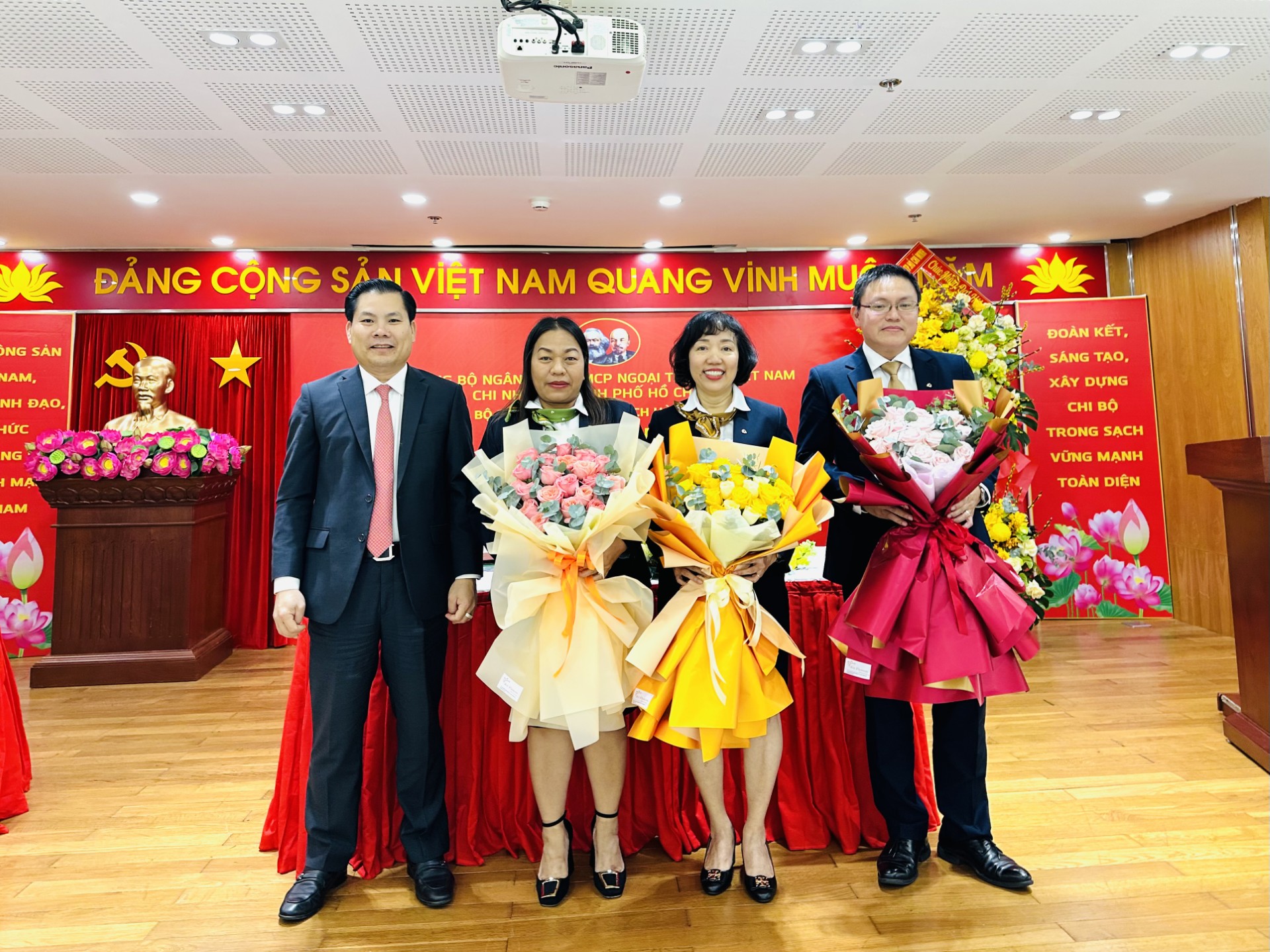 Đồng chí Nguyễn Văn Lập - Ủy viên BCH Đảng bộ Vietcombank, Bí thư Đảng ủy, Giám đốc Vietcombank Thành phố Hồ Chí Minh tặng hoa chúc mừng Chi ủy Chi bộ nhiệm kỳ 2025 - 2027