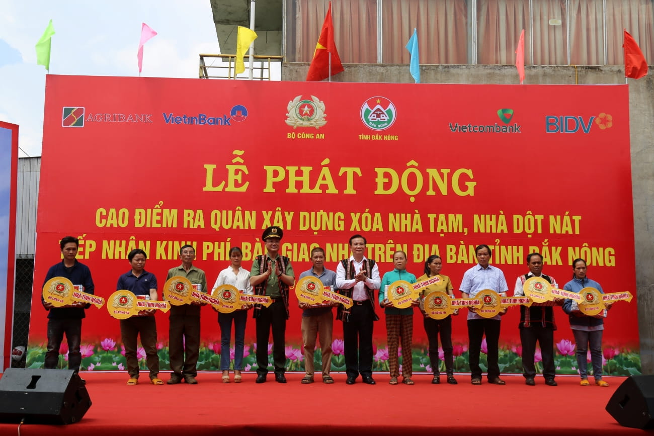 Sáng ngày 12/5/2025, tại Bon Ting Wel Đơm, TP Gia Nghĩa, tỉnh Đắk Nông, Bộ Công an đã tổ chức Lễ phát động cao điểm 56 ngày xây dựng và xóa bỏ 500 căn nhà tạm, nhà dột nát với sự đồng hành và hỗ trợ kinh phí của Vietcombank. Đây là bước đầu quan trọng trong việc cải thiện điều kiện sống cho người dân có hoàn cảnh khó khăn trên địa bàn tỉnh.