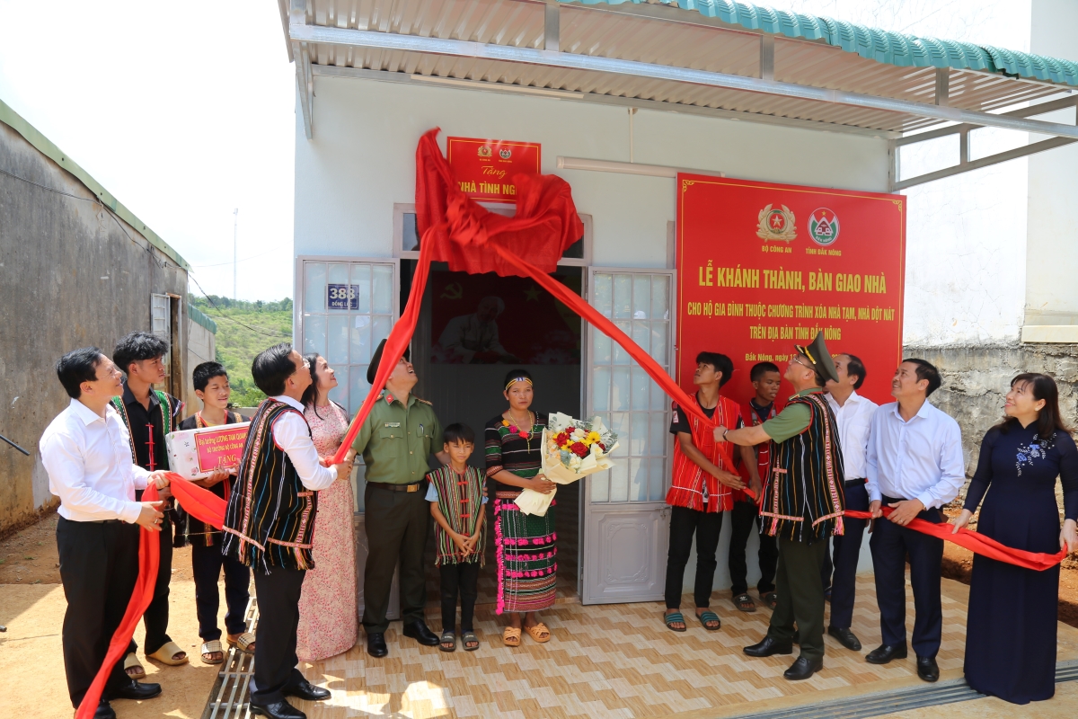 Cũng trong buổi lễ, lãnh đạo Bộ Công an và UBND tỉnh Đắk Nông đã tổ chức lễ khánh thành và bàn giao căn nhà mẫu đầu tiên thuộc chương trình cho gia đình ông K’Srai tại bon Ting Wel Đơm, xã Đắk Nia, TP.Gia Nghĩa.
