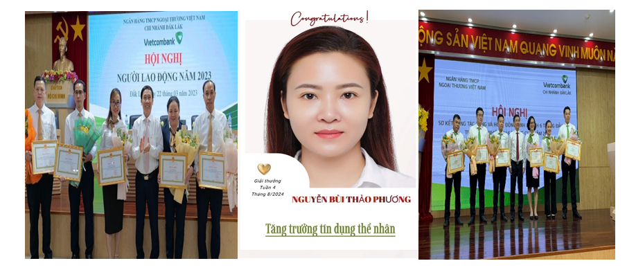 Thiết lập các giải thưởng hàng tháng/quý: Ngân hàng Vietcombank Đắk Lắk đã triển khai hệ thống giải thưởng để ghi nhận những nhân viên xuất sắc hàng tuần, hàng tháng và cuối nă. Những giải thưởng này bao gồm "Nhân viên xuất sắc nhất", "Đội nhóm ấn tượng" và "Đóng góp tốt nhất". Điều này không chỉ tạo động lực mà còn khuyến khích sự cạnh tranh lành mạnh giữa các nhân viên.