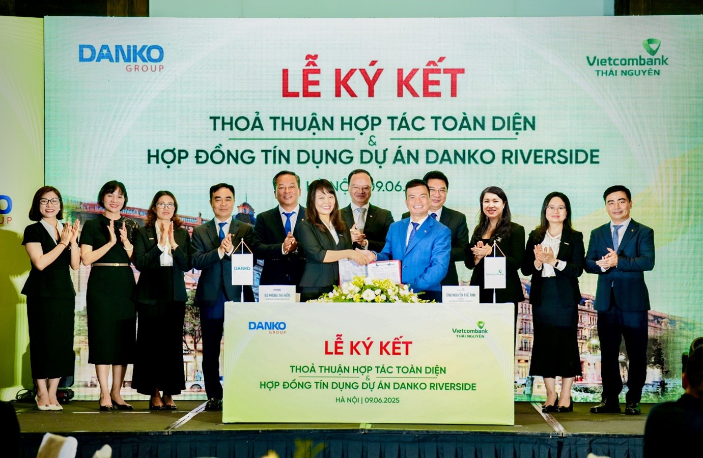 Ngày 09/6/2025, tại Hà Nội, Lễ ký kết Thỏa thuận hợp tác toàn diện và Hợp đồng tín dụng dự án Danko Riverside giữa Vietcombank Thái Nguyên và Danko Group đã diễn ra thành công tốt đẹp.