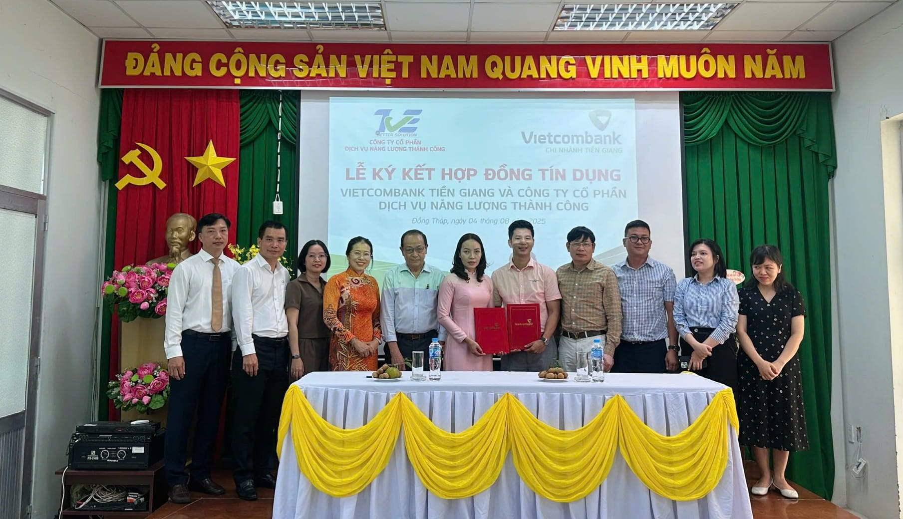 Sáng ngày 04/8/2025, tại trụ sở chi nhánh, Vietcombank Tiền Giang đã ký kết hợp đồng tín dụng với Công ty Cổ phần Dịch vụ Năng lượng Thành Công (Năng lượng Thành Công).