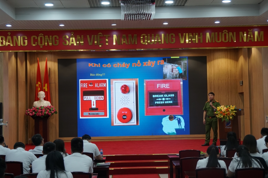 Buổi huấn luyện nghiệp vụ PCCC và CNCH có đồng chí Thiếu tá Dương Mạnh Linh - Đội trưởng Đội Công tác phòng cháy, Phòng Cảnh sát PCCC và CNCH, Công an tỉnh Thái Nguyên làm giảng viên và có sự tham gia của Ban Giám đốc Chi nhánh cùng toàn thể các cán bộ nhân viên.