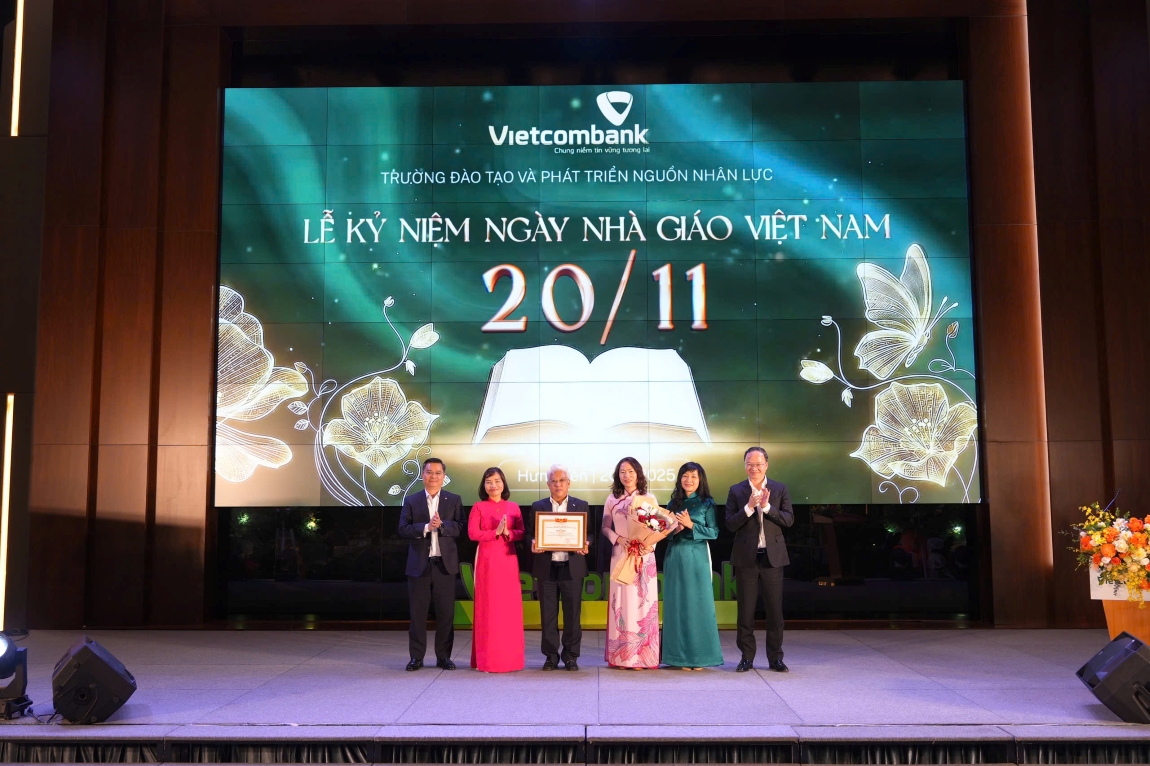 Trong không khí hân hoan cả nước hướng về Ngày Nhà giáo Việt Nam, ngày 20/11/2025 tại Hội trường lớn của Nhà trường, Trường Đào tạo và Phát triển nguồn nhân lực Vietcombank (TĐT) đã long trọng tổ chức Lễ kỷ niệm nhằm tri ân những tập thể và cá nhân đã và đang đóng góp cho sự nghiệp đào tạo, bồi dưỡng nguồn nhân lực của Ngân hàng TMCP Ngoại thương Việt Nam (Vietcombank).