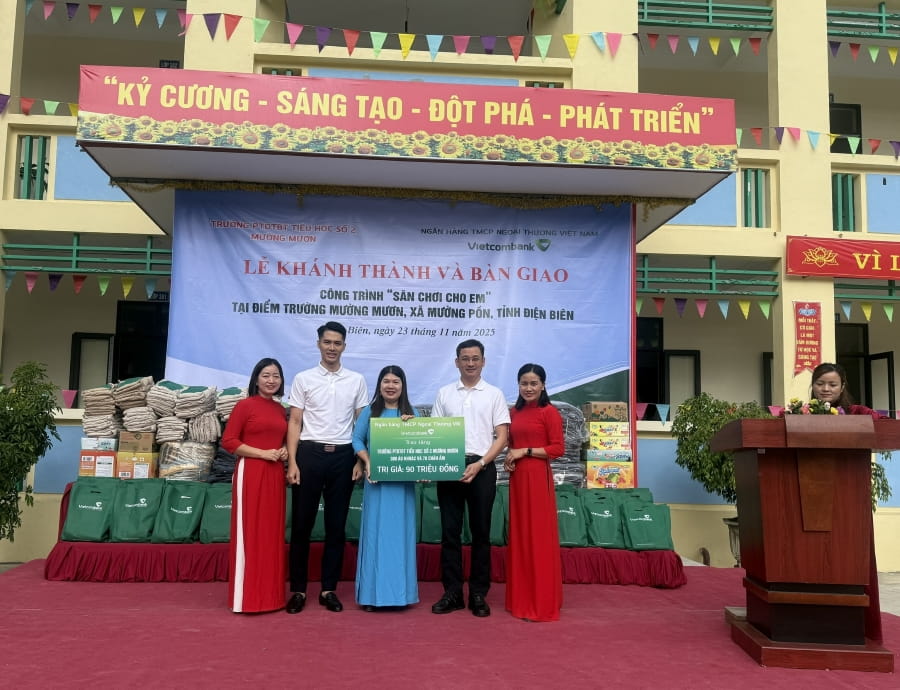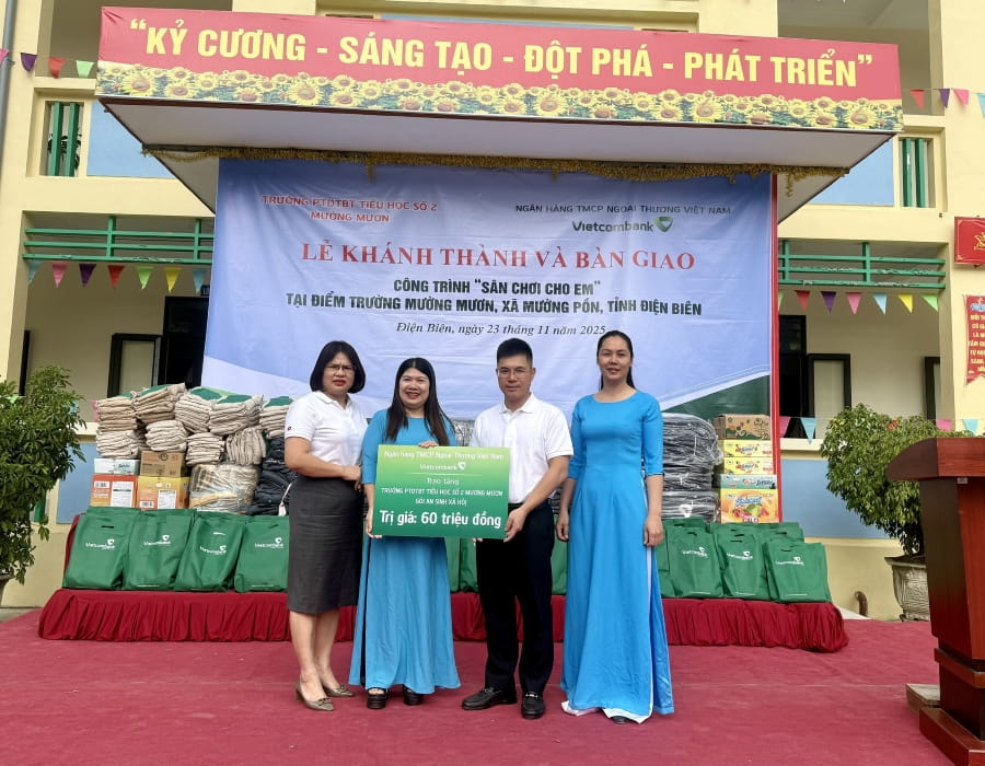 Trong khuôn khổ chương trình, đoàn đã tới thăm và trao tặng “Công trình sân chơi cho em” cùng hàng trăm chăn ấm, áo khoác và nhiều sách vở, đồ dùng học tập cho các em học sinh tại trường Tiểu học số 2 Mường Mươn, xã Mường Pồn, tỉnh Điện Biên. Những phần quà nhỏ nhưng chứa đựng tình cảm chân thành, tấm lòng sẻ chia của cán bộ chi nhánh, góp phần cải thiện điều kiện vui chơi, học tập và nâng cao đời sống tinh thần cho các em học sinh vùng cao.