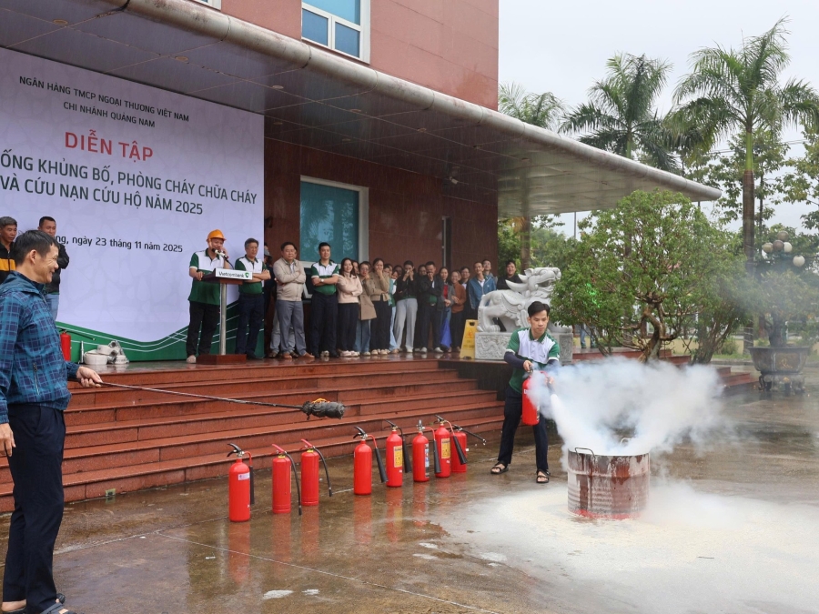Ngày 23/11/2025, Vietcombank Quảng Nam tổ chức diễn tập phương án phòng chống khủng bố, phòng cháy chữa cháy và cứu nạn cứu hộ (PCCC&CNCH) tại trụ sở chi nhánh với sự tham gia toàn thể cán bộ nhân viên.