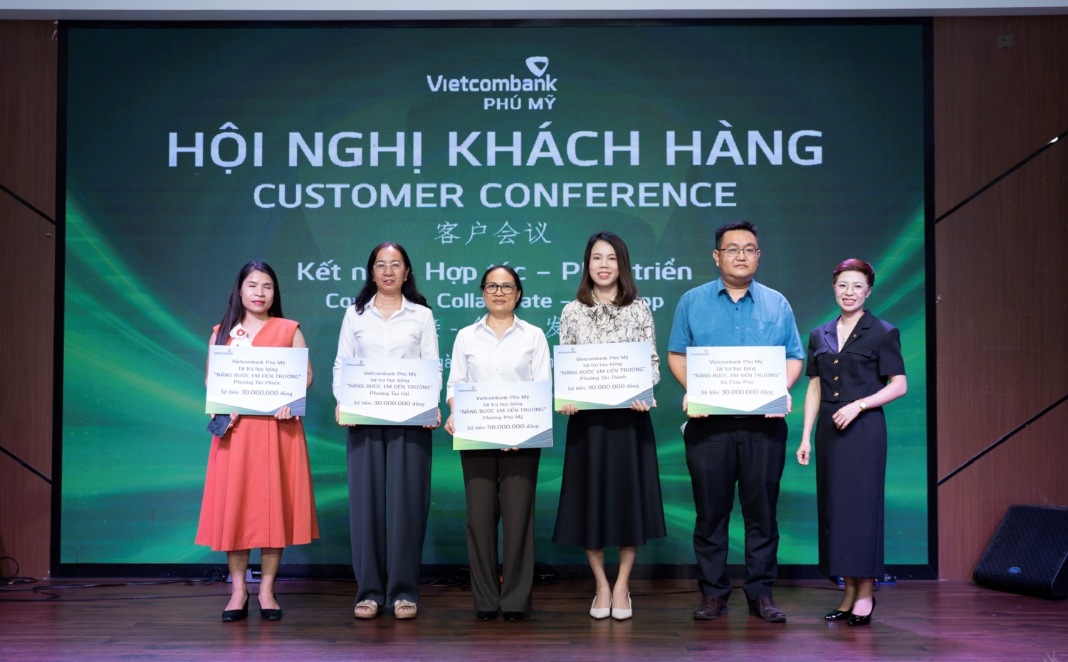 Trong khuôn khổ sự kiện, Vietcombank Phú Mỹ đã trao học bổng trị giá 170 triệu đồng cho học sinh có hoàn cảnh khó khăn, hiếu học thuộc các phường Phú Mỹ, Tân Thành, Tân Hải, Tân Phước và xã Châu Pha. Đây là minh chứng thể hiện cam kết lâu dài và đóng góp tích cực của Vietcombank với cộng đồng.