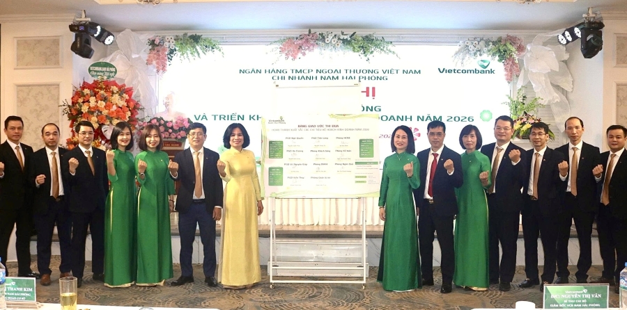 Ngày 17/01/2026, tại Hải Phòng, Vietcombank Nam Hải Phòng đã trang trọng tổ chức Hội nghị Người lao động và triển khai nhiệm vụ năm 2026. Hội nghị được tổ chức nhằm tổng kết, đánh giá toàn diện kết quả hoạt động năm 2025, đồng thời thống nhất phương hướng, nhiệm vụ và các giải pháp trọng tâm để triển khai hiệu quả kế hoạch năm 2026 trong toàn Chi nhánh.