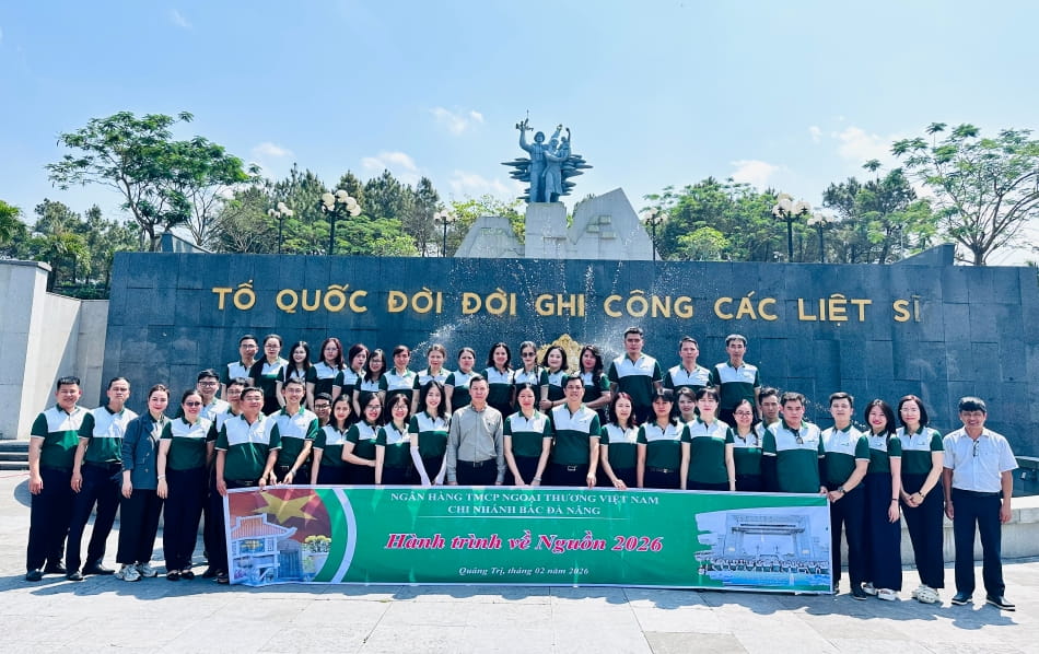 Ngày 28/02/2026, Chi bộ Vietcombank Bắc Đà Nẵng đã phối hợp cùng với đại diện Chi bộ Ban Quản lý Khu Công nghệ cao và các Khu công nghiệp Đà Nẵng tổ chức hành trình về nguồn tại Quảng Trị - vùng đất lửa hào hùng từng là tuyến đầu của cuộc đấu tranh giành độc lập dân tộc. Đoàn Vietcombank Bắc Đà Nẵng do đồng chí Hoàng Thị Hằng - Bí thư Chi bộ, Giám đốc chi nhánh làm trưởng đoàn, cùng các đồng chí trong Chi ủy, Ban Giám đốc, đảng viên và đoàn viên ưu tú tham gia.