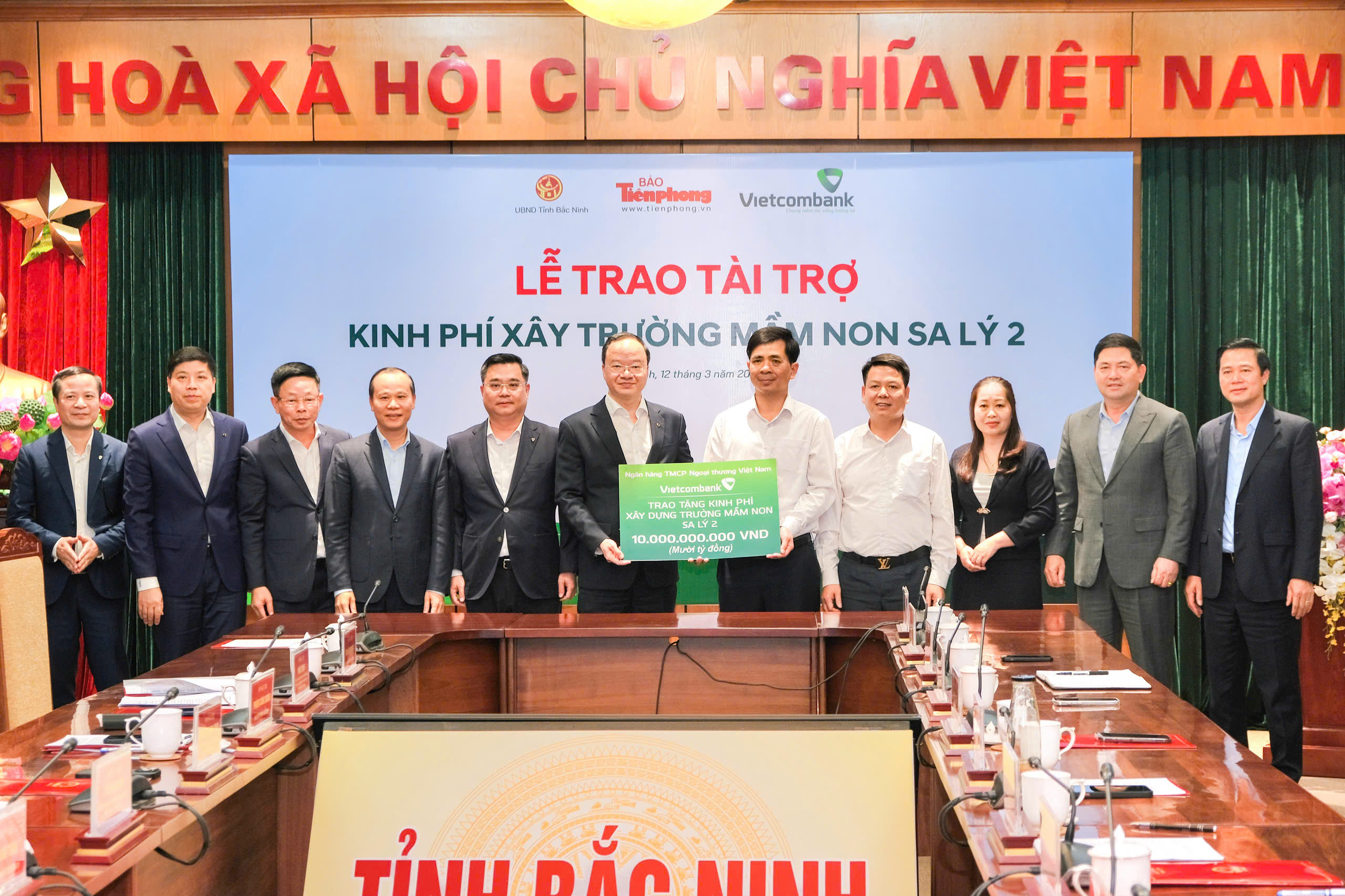Ngày 12/3/2026, tại trụ sở UBND tỉnh Bắc Ninh, Ngân hàng TMCP Ngoại thương Việt Nam (Vietcombank) phối hợp với Báo Tiền Phong và UBND tỉnh tổ chức Lễ trao kinh phí tài trợ 10 tỷ đồng để xây dựng Trường Mầm non Sa Lý 2. Đây là minh chứng cho cam kết bền bỉ của Vietcombank trong sự nghiệp “trồng người” tại những địa bàn khó khăn nhất của Tổ quốc.