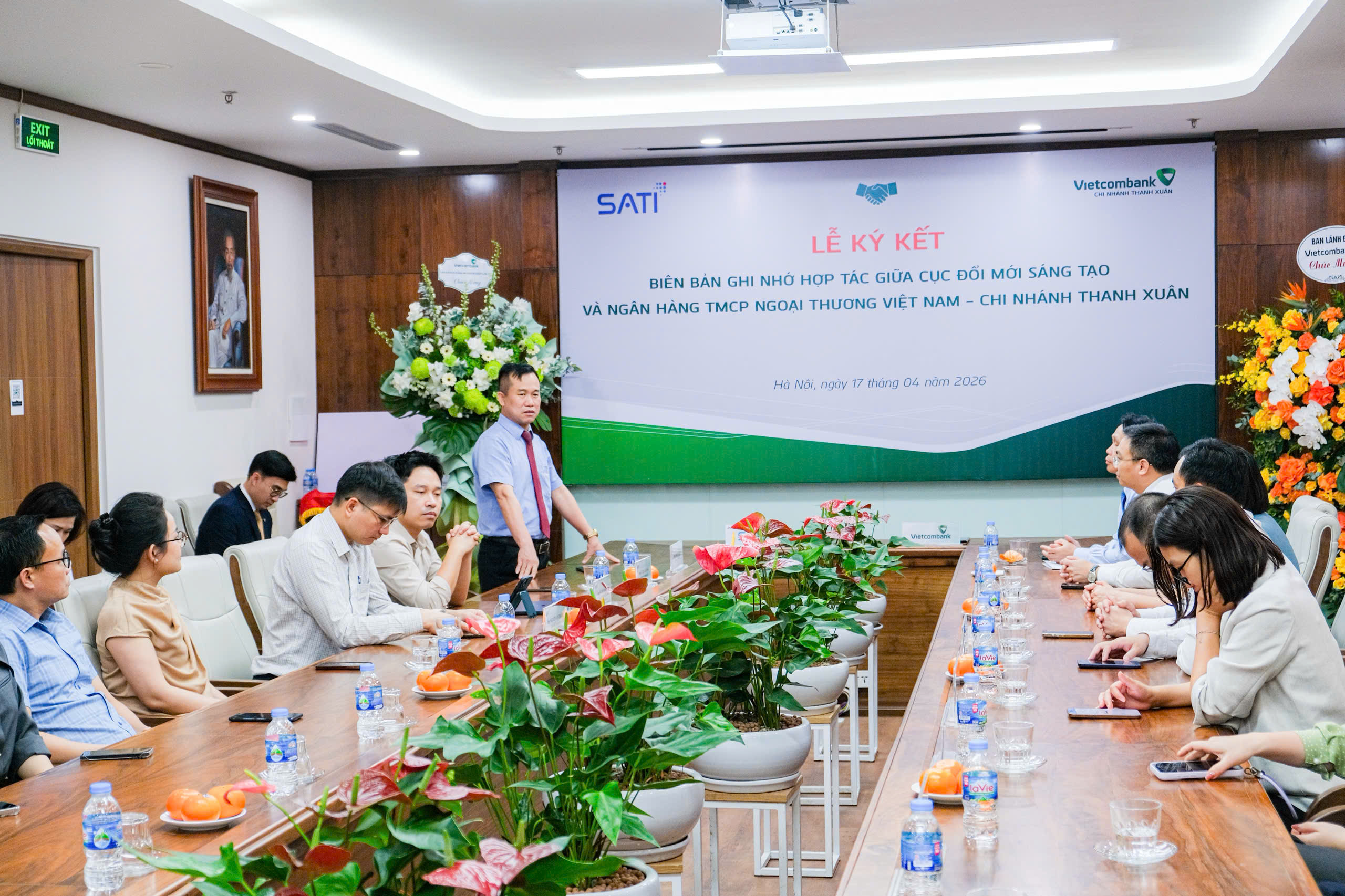 Ngày 17/4/2026, tại Hà Nội, Ngân hàng TMCP Ngoại thương Việt Nam - chi nhánh Thanh Xuân (Vietcombank Thanh Xuân) và Cục Đổi mới sáng tạo - Bộ Khoa học và Công nghệ (Cục ĐMST) đã ký kết Biên bản ghi nhớ về việc phối hợp cung ứng dịch vụ. Đây là cột mốc quan trọng góp phần mở ra những cơ hội hợp tác mạnh mẽ và toàn diện hơn vào sự phát triển của hai đơn vị.