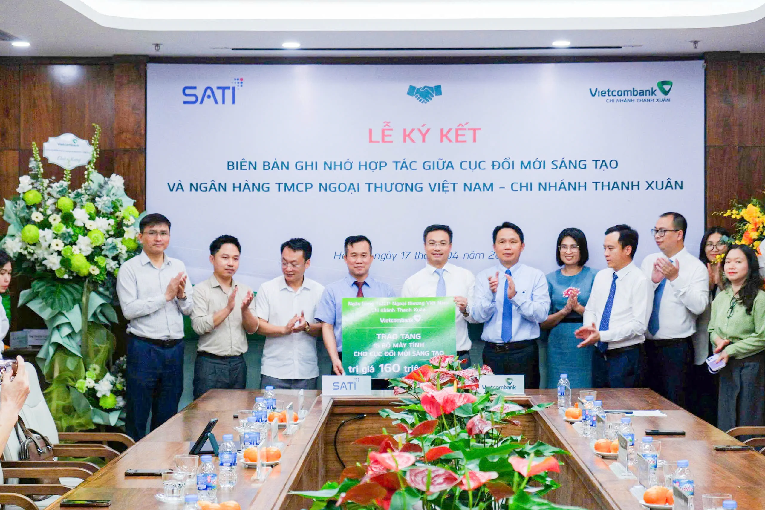 Cũng tại buổi lễ, Vietcombank Thanh Xuân đã trao tặng cho Cục ĐMST 15 bộ máy tính trị giá 160 triệu đồng, thể hiện mong muốn được đồng hành với Cục ĐMST trong các hoạt động hỗ trợ, thực hiện các hoạt động ứng dụng, chuyển giao, đổi mới, phát triển công nghệ và đổi mới sáng tạo, phát triển thị trường khoa học và công nghệ; hoạt động khoa học và công nghệ.